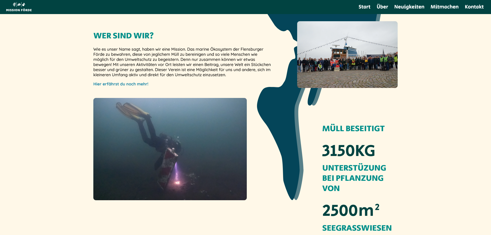 In Kooperation mit dem Naturschutzverein Mission Förde aus Flensburg haben wir für unser drittes Studiensemester eine Seite erstellt, die den Verein repräsentiert und über den Umweltschutz aufklärt.