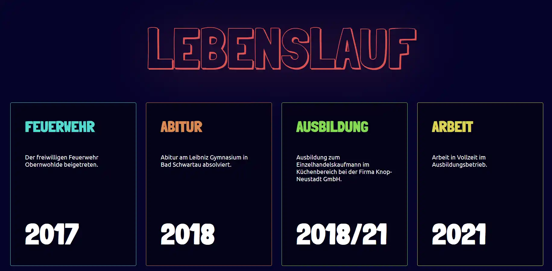 Im Laufe der Jahre habe ich mehrere Portfolioseiten erstellt, um meine Skills im Webdesign zu verbessern. Mit dem meinem ersten Portfolio habe ich mich bei Dräger beworben und wurde mit diesem auch angenommen.